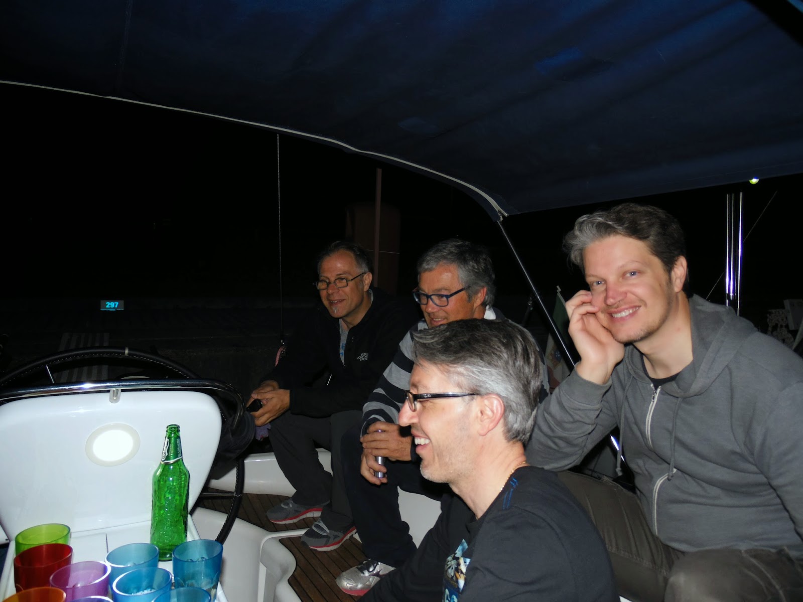 nella barca di Paolo siamo tutti attivi e belli svegli, randa e fiocco in posizione e spegnamo il motore