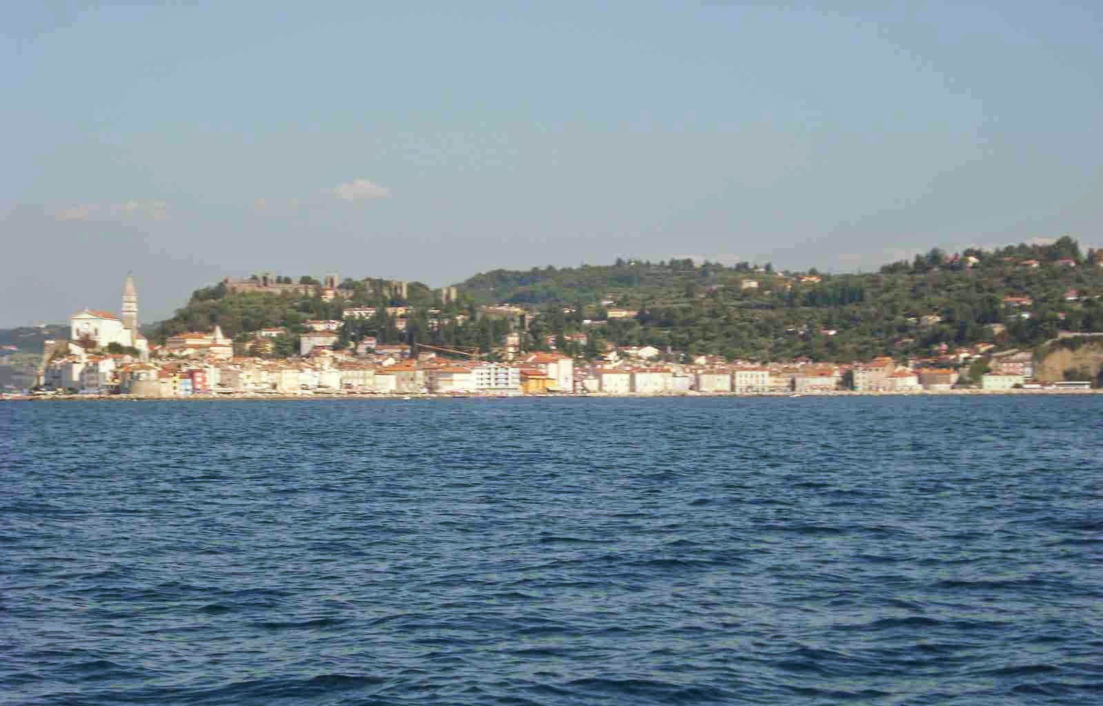 c'è anche il tempo per un po' di esercizi di manovre, il capitano dopo alcune spiegazioni, prova delle virate sotto costa, l'equipaggio lo segue o meglio tenta di seguirlo, le operazioni riescono anche se con una certa lentezza, siamo distratti dal panorama. Prima si riconosce Pirano e poi il faro di Salvore, ormai ci siamo