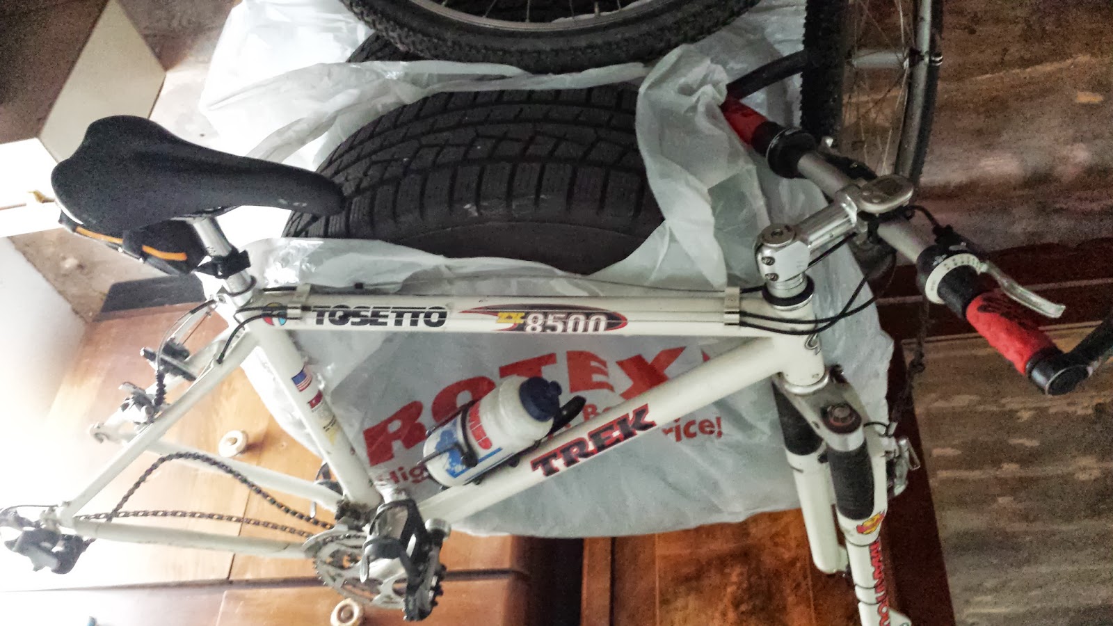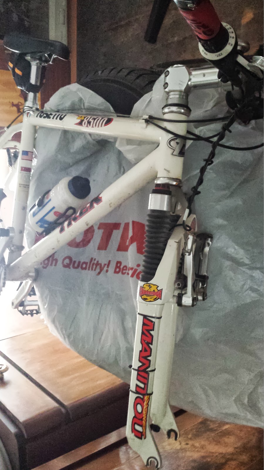 Grande pezzo vintage: Trek zx8500 anno indefinito (anni '90) in alluminio, cambio misto Sram-Shimano 8v, forcellone Manitou, completa di ruote (nella foto non si vedono), taglia S-M. Si valutano offerte libere.