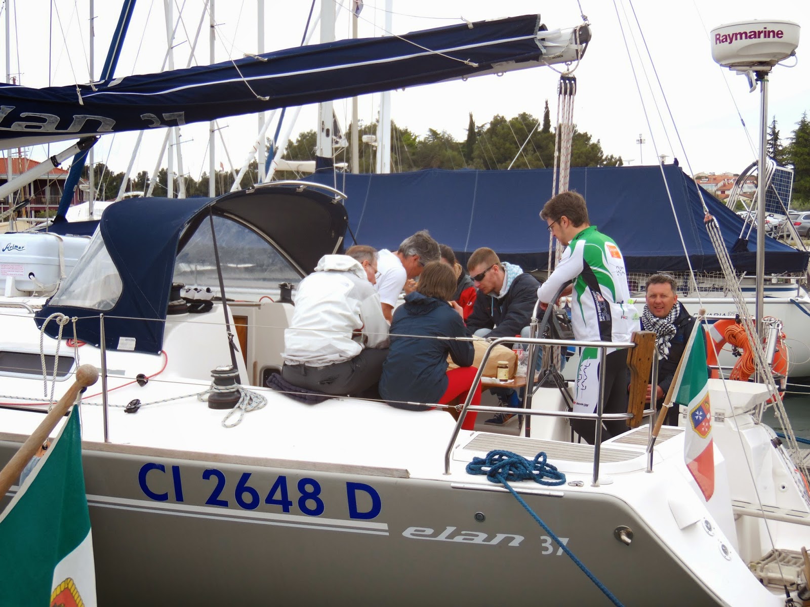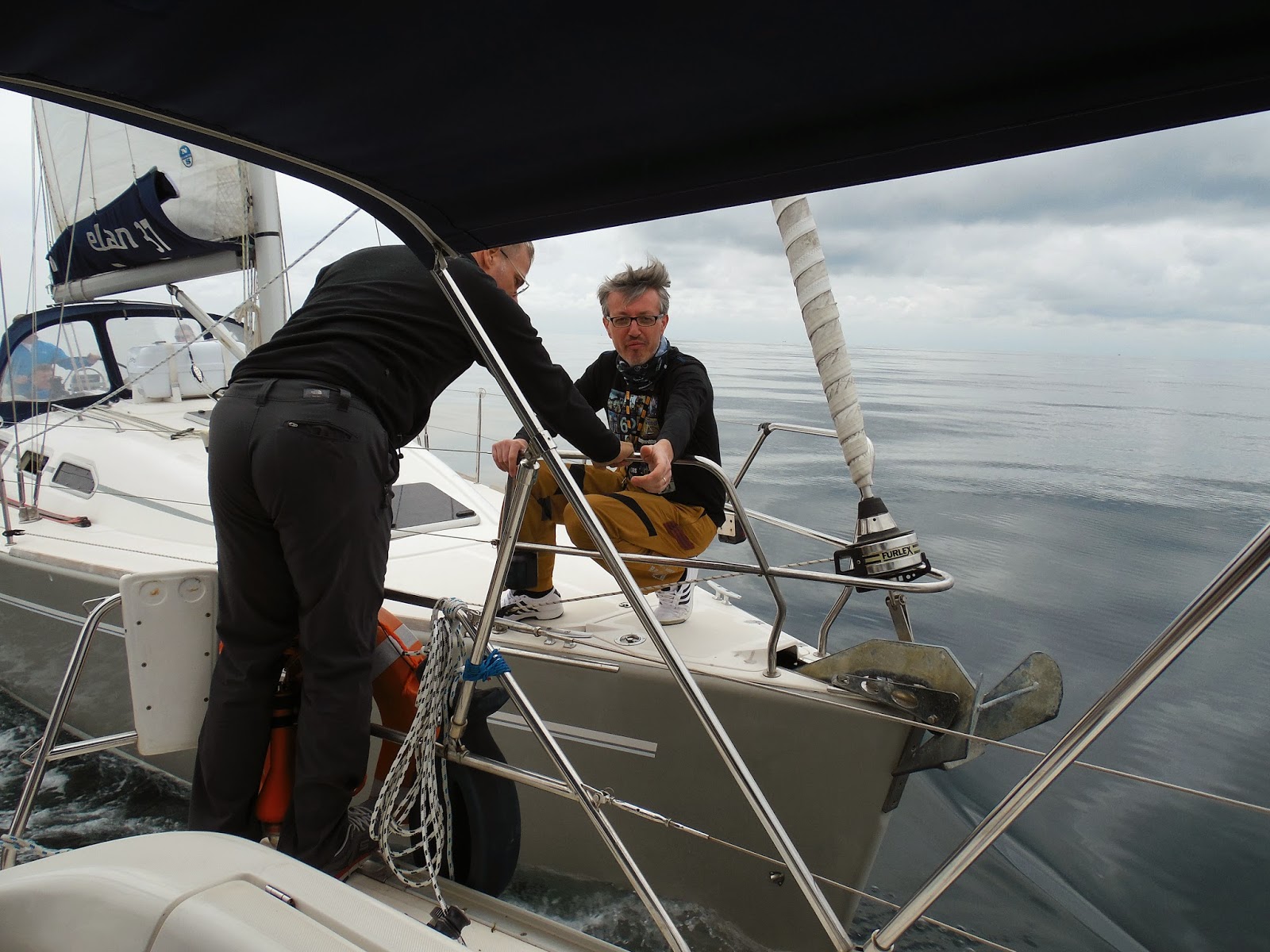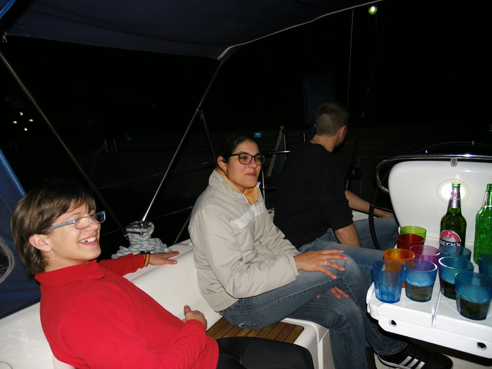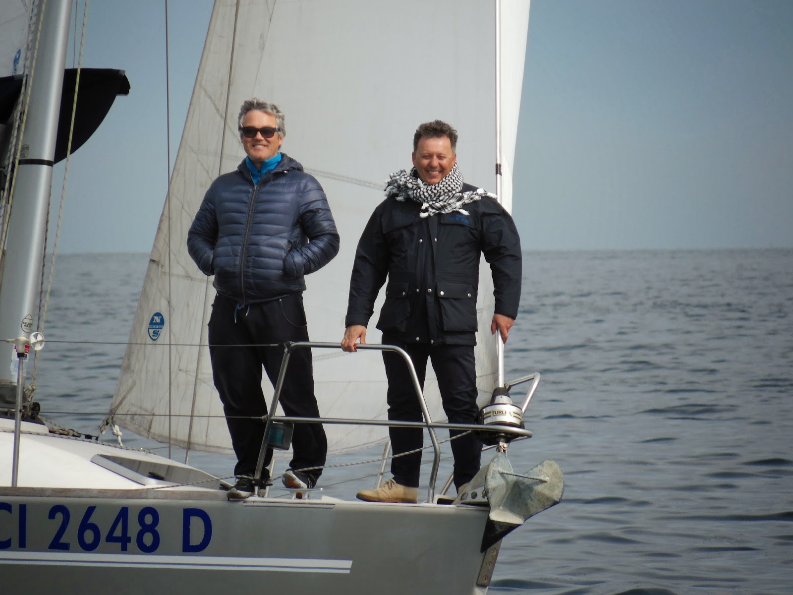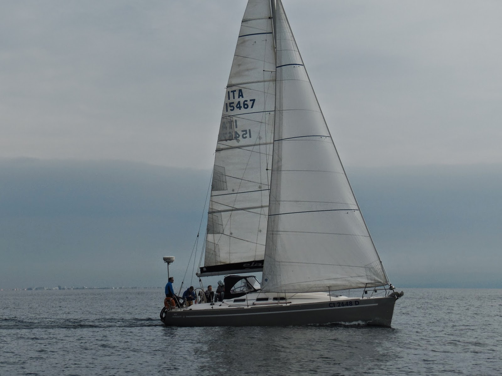 nella barca di Paolo siamo tutti attivi e belli svegli, randa e fiocco in posizione e spegnamo il motore